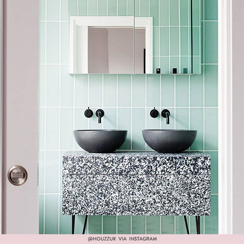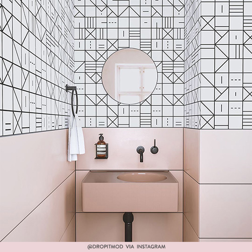@dropitmod has absolutely nailed it, with the patterned tiles combining beautifully with the more subtle elements. The monochrome tiles make the statement, while the pink tiling brightens and opens up the room. What a look!